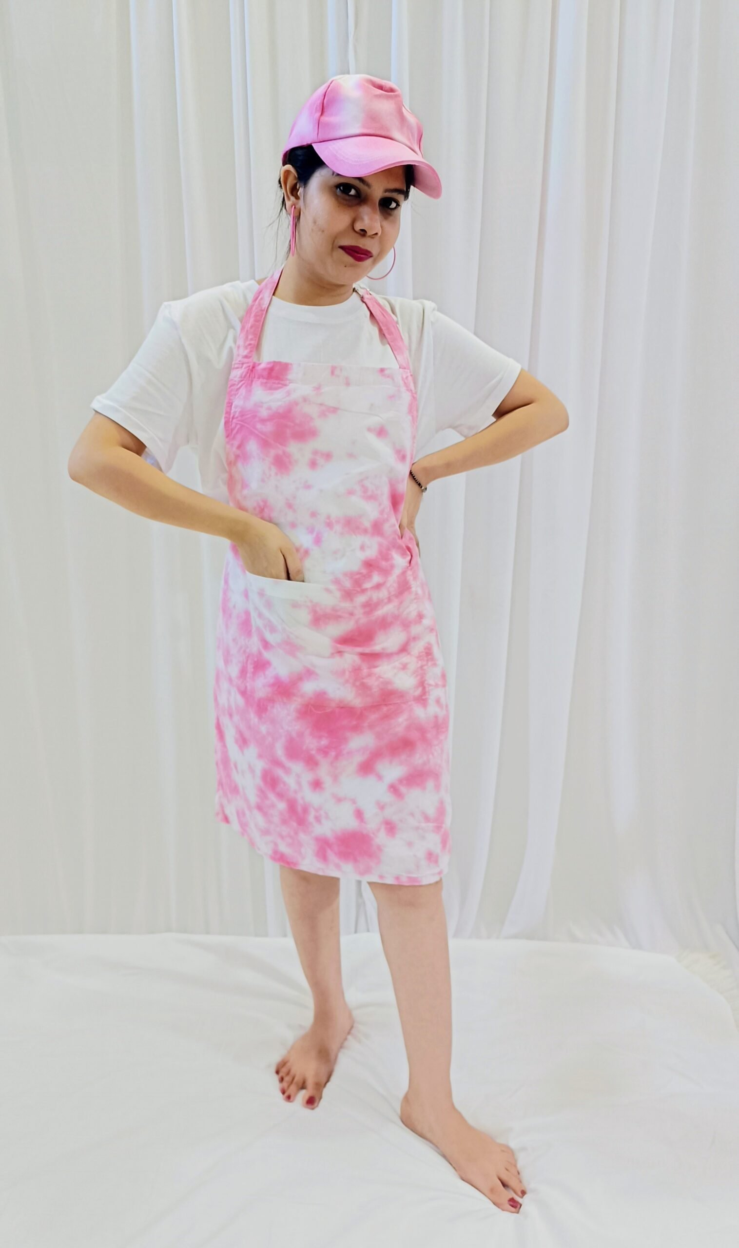 Stay stylish and protected with this hand dyed apron featuring a unique metal shoulder tie and adjustable back tie-up. Designed for both utility and comfort, the apron is crafted from soft cotton fabric, ideal for use in kitchens, workshops, cafes, or studios.