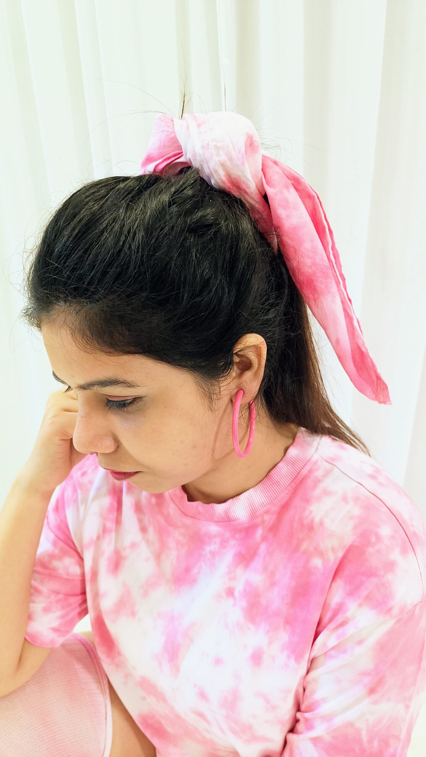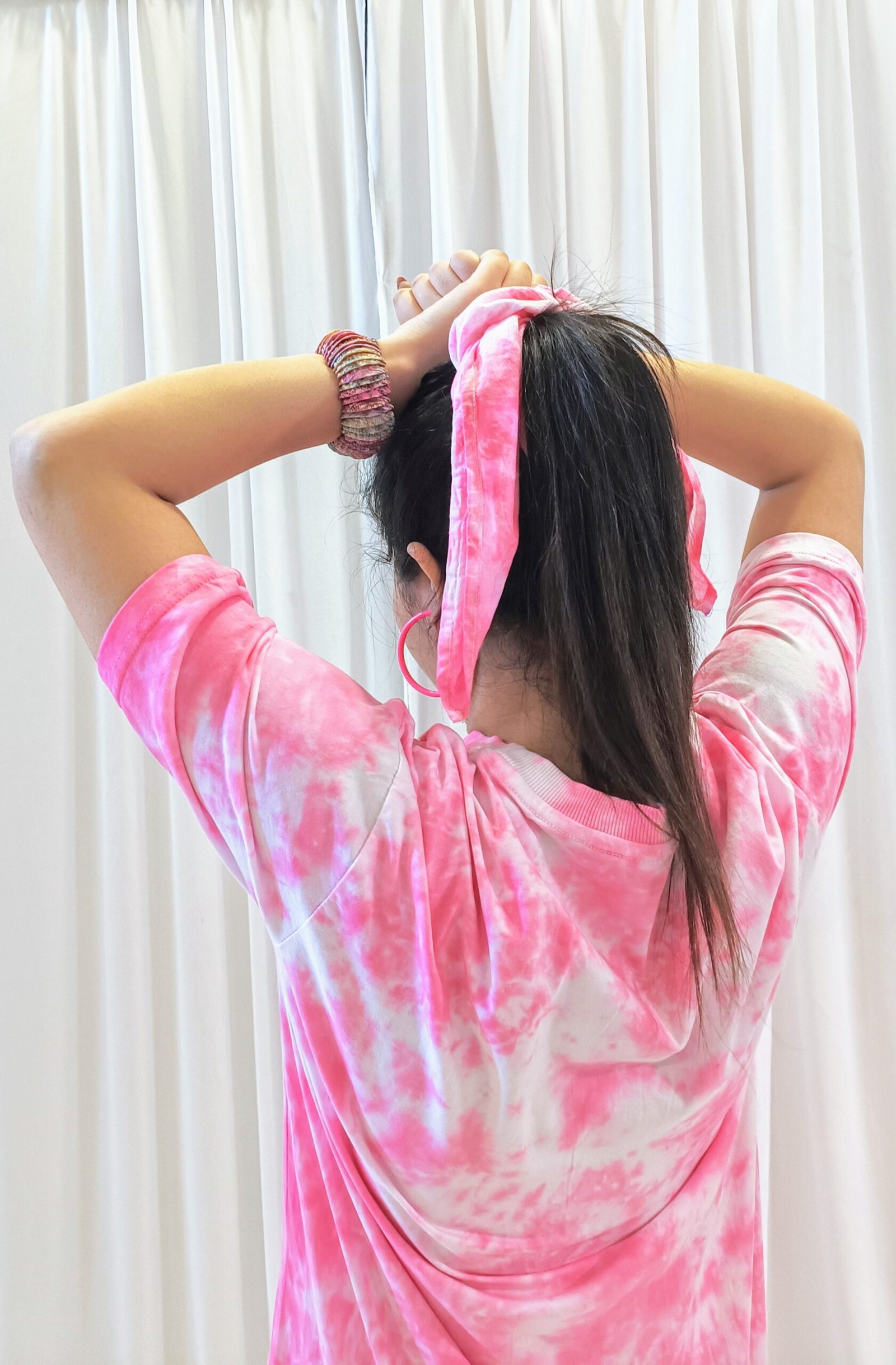 Hand-dyed pink tie-dye cotton bandana—versatile, breathable, and perfect for everyday wear or bold styling.