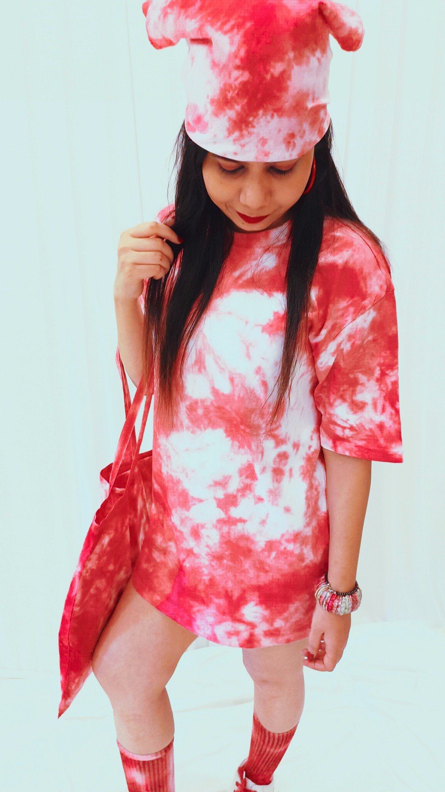 Make a bold statement with this vibrant red tie-dye T-shirt, crafted from ultra-soft, breathable cotton for all-day comfort. Designed to be unisex, its oversized fit suits all body types, making it a versatile choice for everyday wear. Each piece is hand-dyed, giving it a unique pattern that adds personality and style to any outfit. Whether paired with jeans, shorts, or layered under a jacket, this T-shirt offers a casual yet eye-catching look. The soft cotton fabric ensures a light, airy feel against the skin—perfect for warm days, festivals, or just lounging in comfort and color.